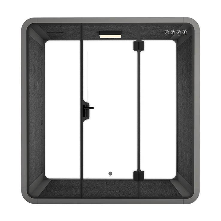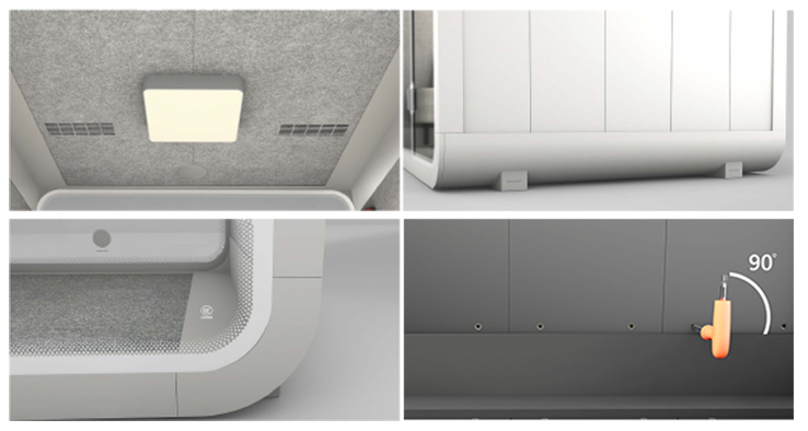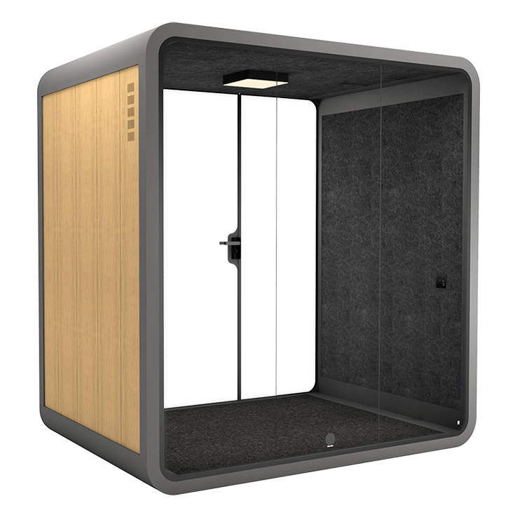 Der ROOMER-CUBE verfügt über akustisch wirksame Innenausstattung aus Filz-Paneelen, die durch ihre schallabsorbierende Wirkung eine angenehme Arbeitsatmosphäre bieten.