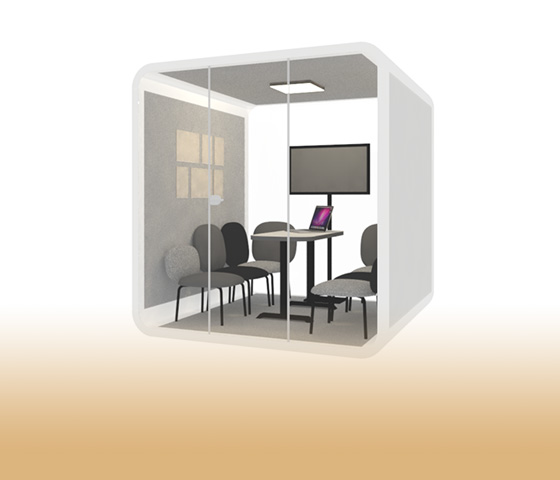 Der Bedarf, innerhalb von bestehenden Strukturen, vor allem in Großraumbüros oder auf Veranstaltungsgeländen, Boxen oder Kabinen für Telefongespräche oder Meetings zu schaffen und die Arbeitsatmosphäre zu beruhigen, ist uns in den vergangen Jahren immer wieder begegnet. Bei unserer Zusammenarbeit mit Unternehmen oder Institutionen aus dem Gesundheitswesen fiel auch hier wieder der Bedarf an flexiblen Raum-in-Raum-Konzepten auf.