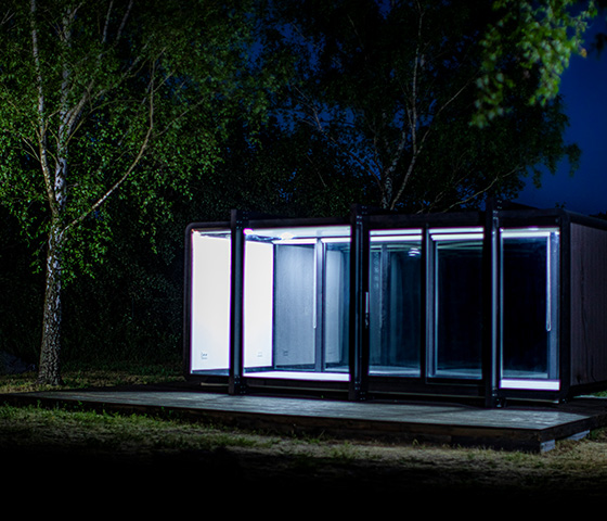 Der ROOMER-CUBE wird momentan sporadisch als kleine Eventlocation genutzt, der Ausbau zum Workspace ist zudem bereits in Planung.